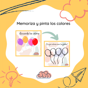 En este material te encontrarás muchas tarjetas de globos (desde 3 a 5 globos) en los que tendrás que recordar los colores y luego pintar en los globos según los colores que había en la tarjeta. Te recomiendo recortar y poner juntas las tarjetas para que tengas por un lado la que tengan que memorizar y del otro el que hay que colorear. Para poder utilizarla más veces, plastifica y pinta con rotuladores, subrayadores o rotuladores de pizarra y luego borra con algún spray limpiador.